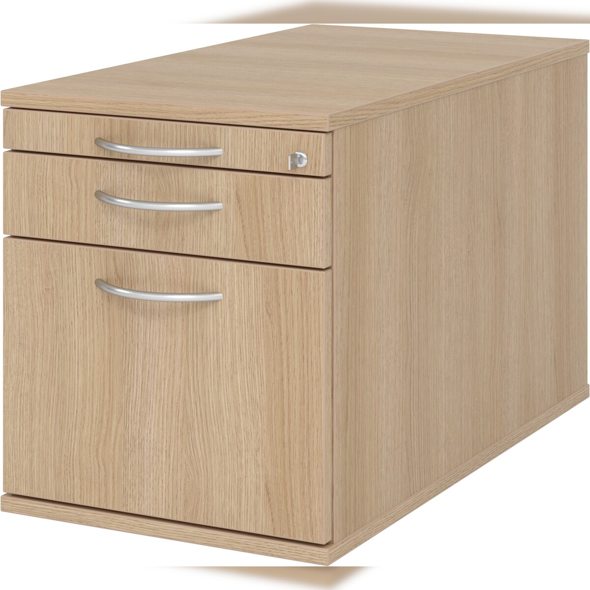 bümö Rollcontainer mit Hängeregister für Hängeordner, Container abschließbar in Eiche - Rollwagen mit Hängeregistratur als Schreibtisch Unterschrank