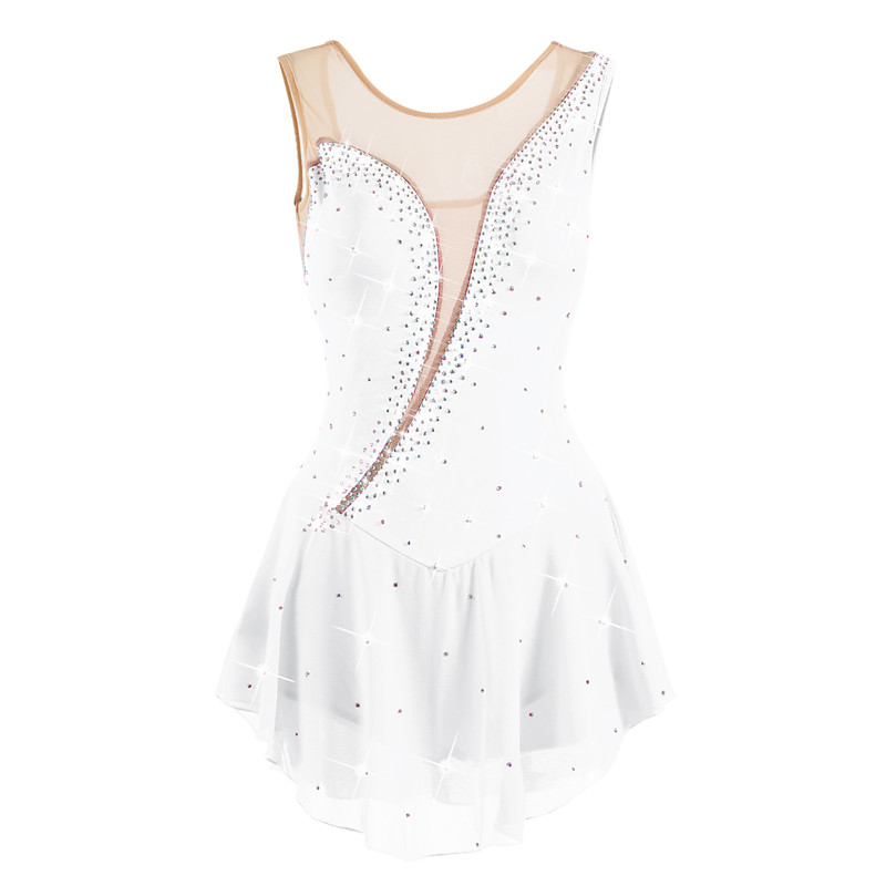 Figure Skating Dress Women's Girls' Ice Skating Dress White / White Yellow Yellow Dark Purple Asymmetric Hem Mesh Spandex High Elasticity Competition Skating Wear Crystal / Rhinestone Sleeveless