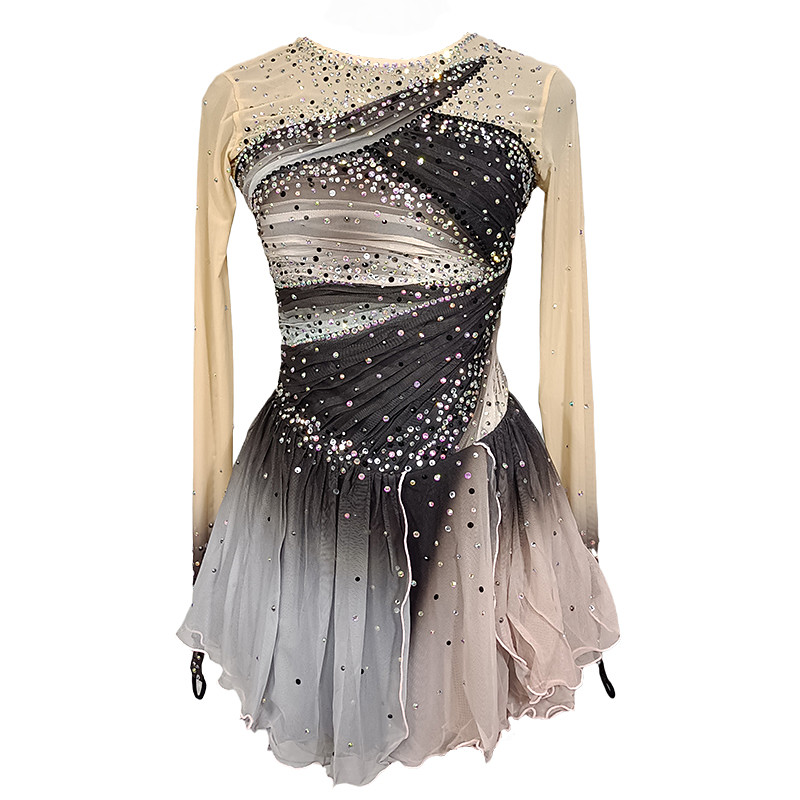 Figure Skating Dress Women's Girls' Ice Skating Dress Grey Patchwork Thumbhole Mesh Spandex Stretchy Training Practice Professional Skating Wear Crystal / Rhinestone Long Sleeve Figure Skating