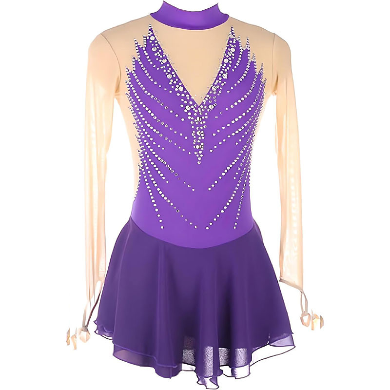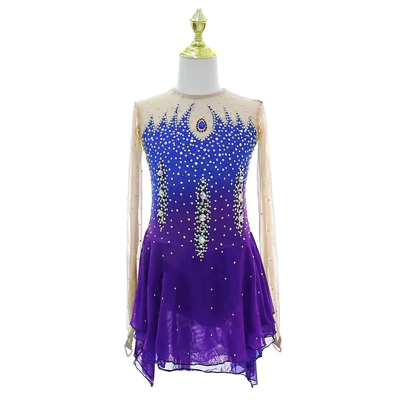 Figure Skating Dress Women's Girls' Ice Skating Dress Violet Patchwork Mesh High Elasticity Training Competition Skating Wear Classic Crystal / Rhinestone Long Sleeve Ice Skating Figure Skating