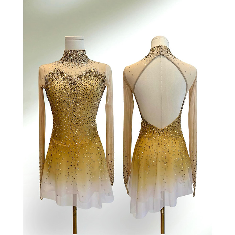 Figure Skating Dress Women's Girls' Ice Skating Dress Yellow High Elasticity Training Competition Skating Wear Classic Crystal / Rhinestone Long Sleeve Ice Skating Figure Skating