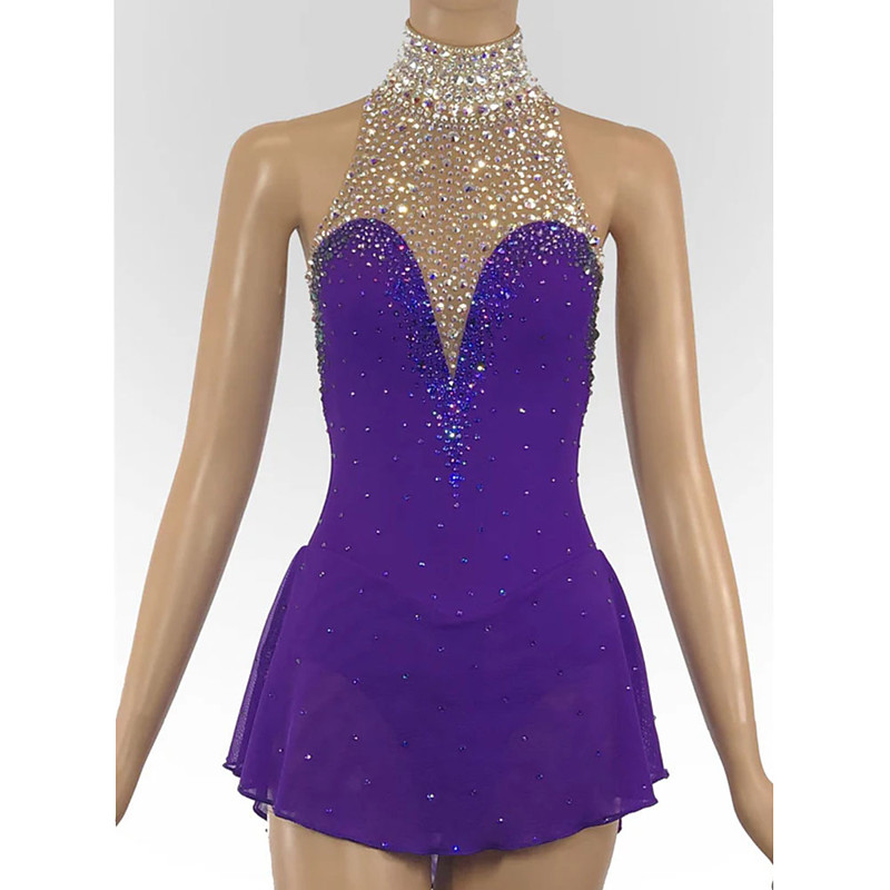 Figure Skating Dress Women's Girls' Ice Skating Dress Purple Asymmetric Hem Spandex Mesh High Elasticity Training Professional Competition Skating Wear Classic Crystal / Rhinestone Sleeveless Ice