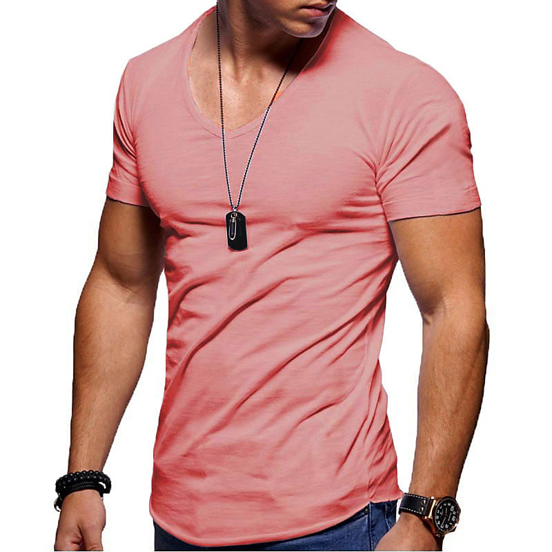 Men's T Shirt Tee V Neck Basic Casual Muscle Short Sleeve Dark Yellow Dark Brown Navy Wine Red Kong Lan Black Solid Color V Neck Daily Zipper Clothing Clothes Polyester 1pc Basic Casual Muscle