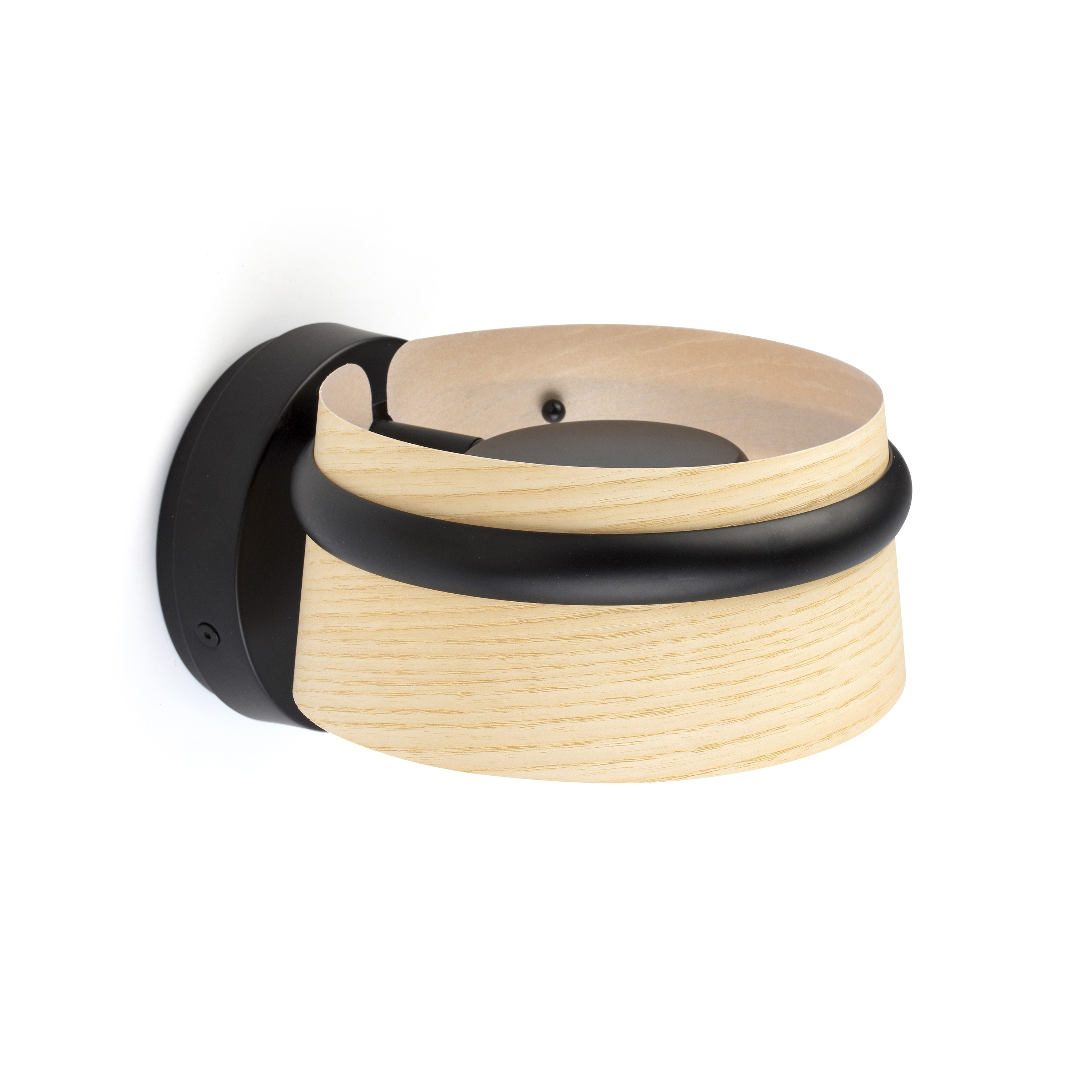 Faro Loop - Wandleuchte - 19 x 24 x 13 cm - 6W dimmbare LED inkl - braun und schwarz - Eschenholz