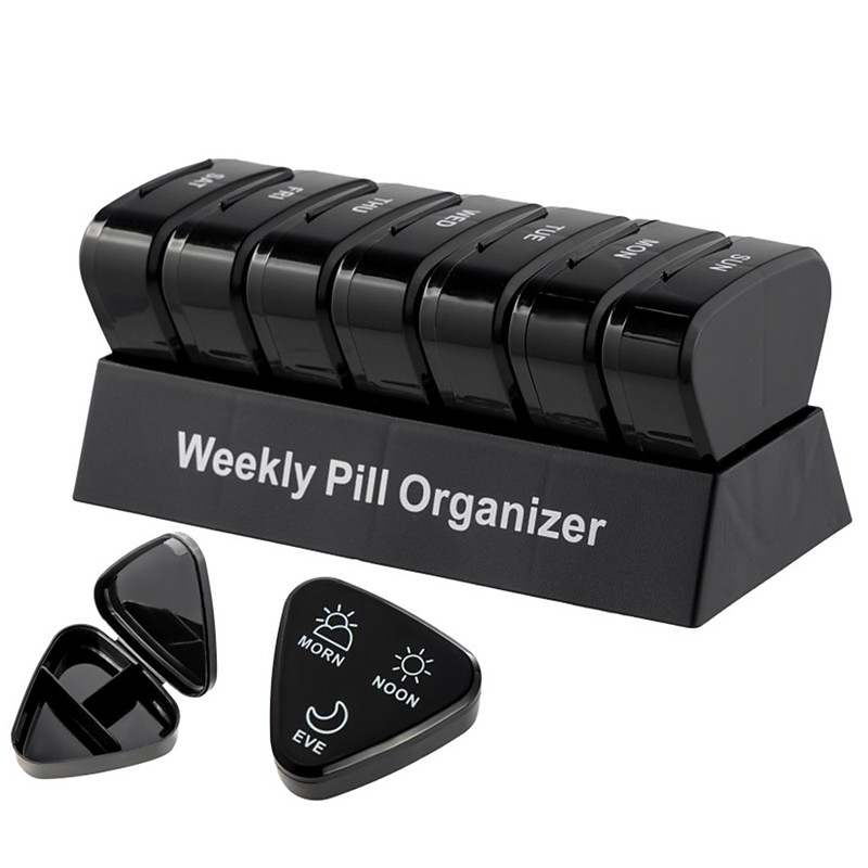 Weekly Pill Organizer 3 Times a Day, 7 Day Triangular Pill Box with 21 Compartments, PP Plastic Medicine Case for Morning Noon Evening, Easy-Open Weekly Pill Holder, BPA Free