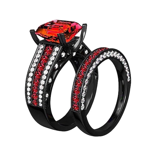 set di anelli da uomo con pietra nera, stile gotico vintage in lega con gemma a taglio quadrato, opzioni multicolore per fedi nuziali, fidanzamenti, feste e abbigliamento casual quotidiano