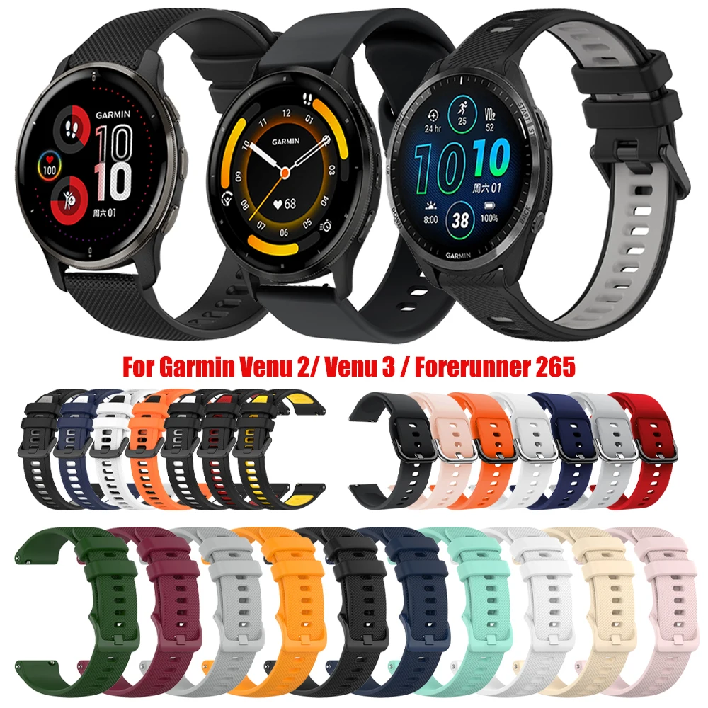 Watch Band for Garmin Forerunner 265S 265 Venu 3S 3 Active 5 Vivoactive 4S 4 Vivomove Sport Luxe Style HR Approach S42 S40 S12 18mm 20mm 22mm Silicone Replacement Strap 18mm 20mm 22mm Sport Band