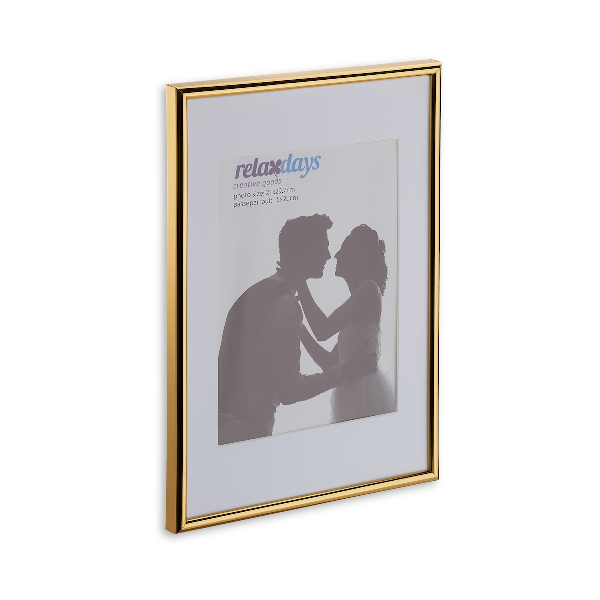 Relaxdays Bilderrahmen 2er Set, Din A4, Passepartout 15x20 cm, Glasscheibe, Fotorahmen zum Stellen oder Hinhängen, gold
