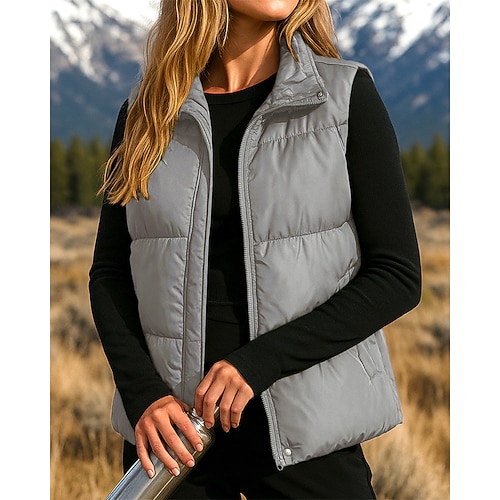 Per donna Gilet da escursionismo Gilet imbottito Senza Maniche Gilet Esterno Calore Termico Inverno Cerniera Poliestere Bianco Caffè Grigio Caccia Pesca Arrampicata