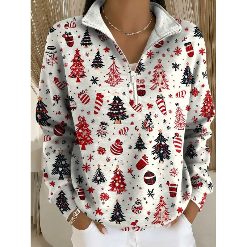 Christmas Women's Christmas Tree SnowflakePullover Sweatshirt Graphic Casual Long Sleeve Half Zip Regular Tops Dailywear Casual Sports White Light Green Brown Light Grey Beige Winter
