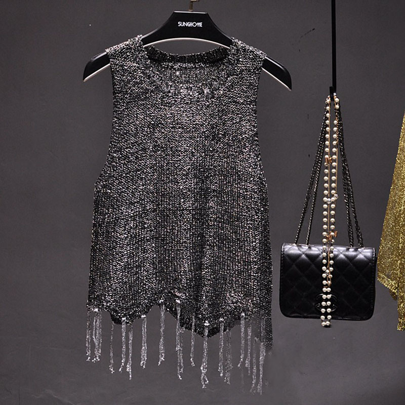 Women's Blouse Eyelet top Camisole Tank Top Plain Stylish Sexy Casual Sleeveless Crew Neck Regular Tops Daily Holiday Going out Hollow Out Glitter Black Khaki Apricot Summer Spring Fall