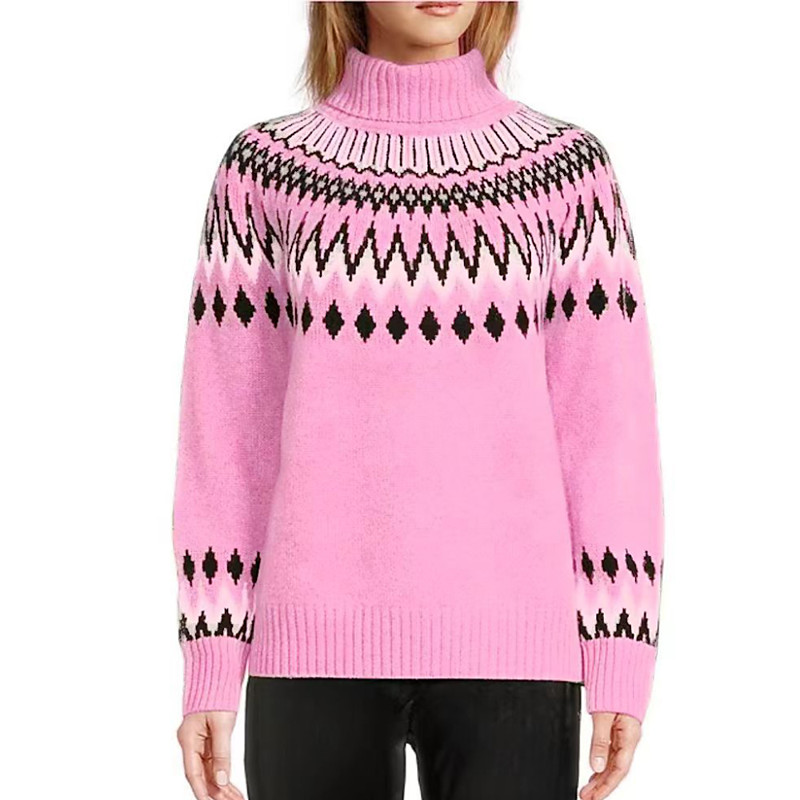 Women's Christmas Sweater Fair Isle Sweater Sweater Fair Isle Sweater Streetwear Casual Floral Mock Neck Knitted Print Long Sleeve Regular Tops Knit Daily Going out Weekend Yellow Pink Fall Winter