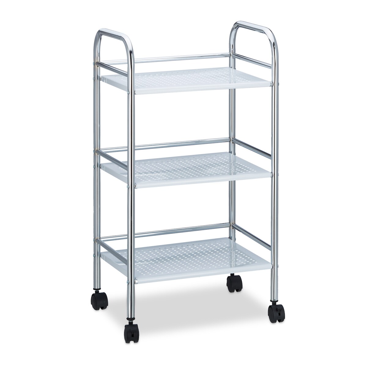 Relaxdays Servierwagen Metall mit 3 Ablagen, Etagen Küchenwagen mit Griff, Bremsen, Regalwagen HxBxT 75x40,5x31 cm, weiß