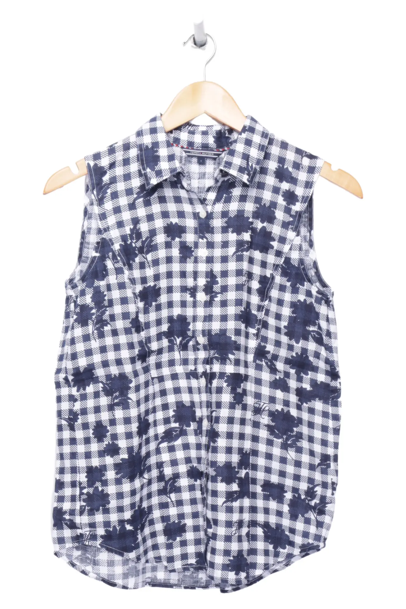 TOMMY HILFIGER Top Blau Karo Gr. 34 Damen Sommer Leinen