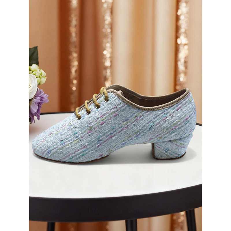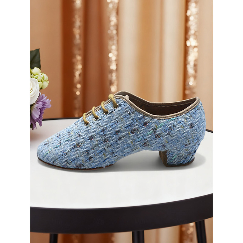 Women's Tweed Lace-Up Low Heel Dance Shoes - Comfortable Performance Oxfords for Kids Teens' Stage Shows and School Recitals