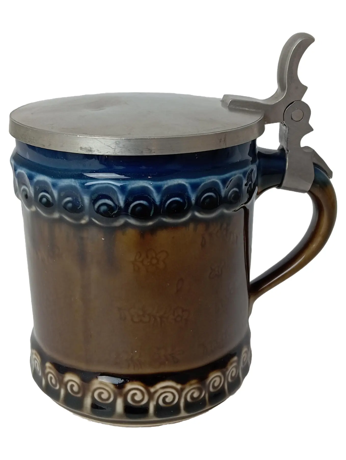ROSENTHAL Krug mit Zinndeckel, 15 cm, Braun/Blau, Antik
