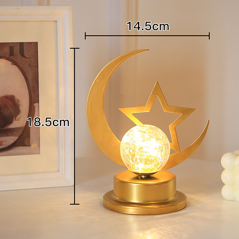 Ramadan EID Metal Hollow Ball Decorative Lamp Star Moon Castle Indoor Bedroom Atmosphere Ornament Lamp AAA Battery 18.5 14.5CM