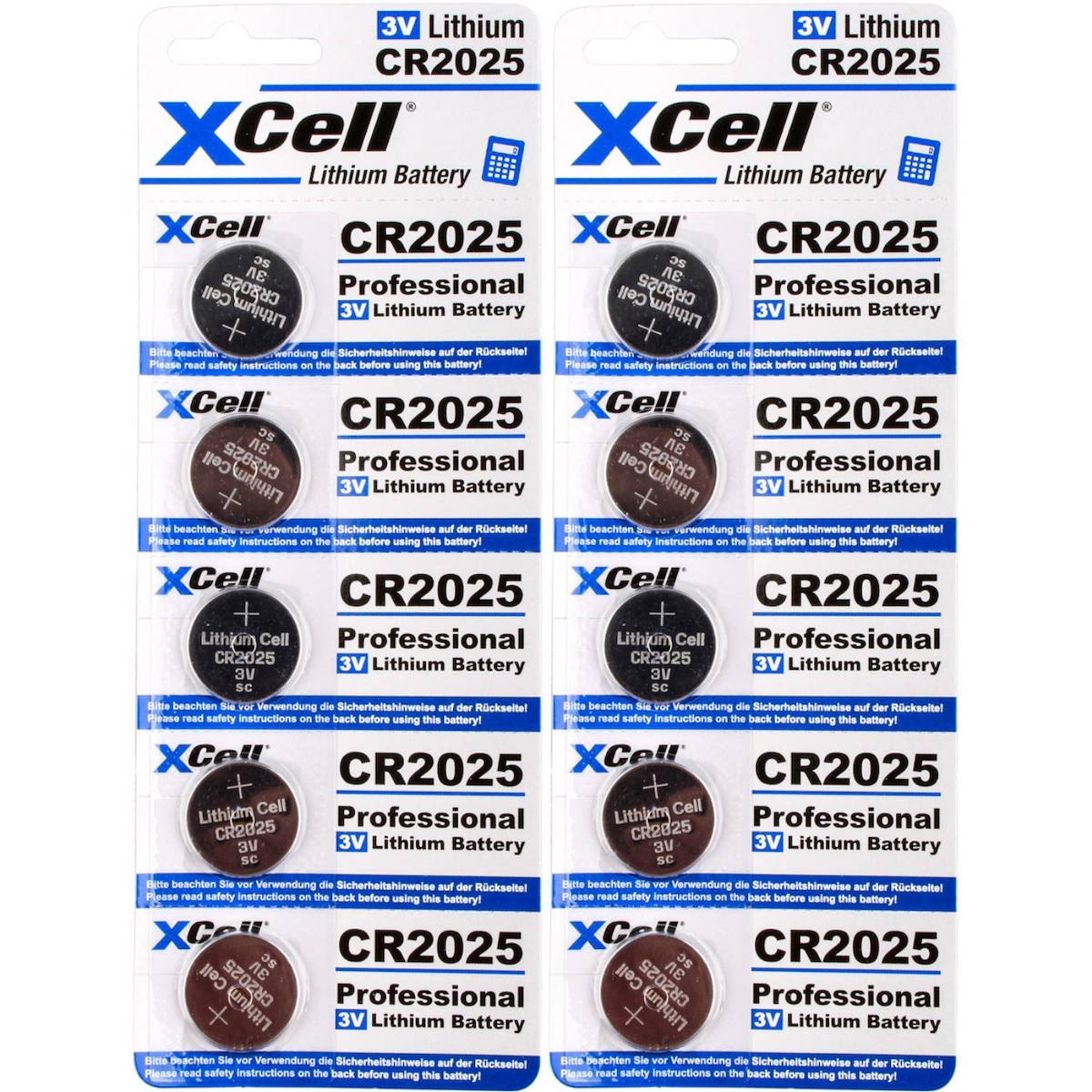 10x CR1025 XCell Lithium-Knopfzelle 3V/25mAh (2x 5er Pack)