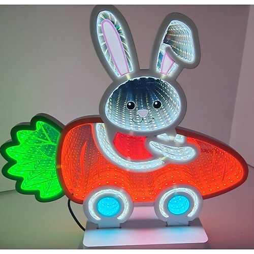 coniglietto 3D illuminato a LED con Pasqua, luce notturna coniglietto pasquale creativa, carrello di carote, luce infinita per uova, acrilico