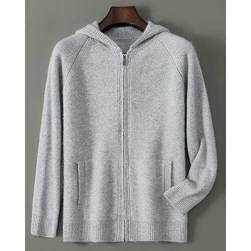 maglione cardigan da uomo in pura lana e cashmere di alta qualità, classico, con cappuccio, in maglia, con cerniera, tasca, morbido, caldo e traspirante