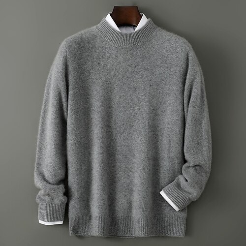 maglione girocollo da uomo in pura lana e cashmere di alta qualità, classico pullover lavorato a maglia, morbido, caldo e traspirante