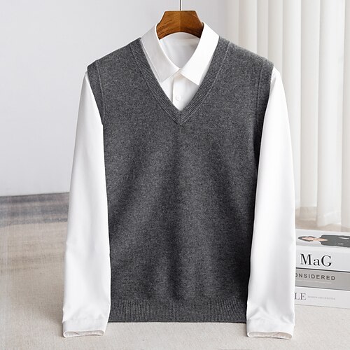 maglione da uomo in pura lana di alta qualità, cashmere, con scollo a V, classico, morbido, caldo e traspirante