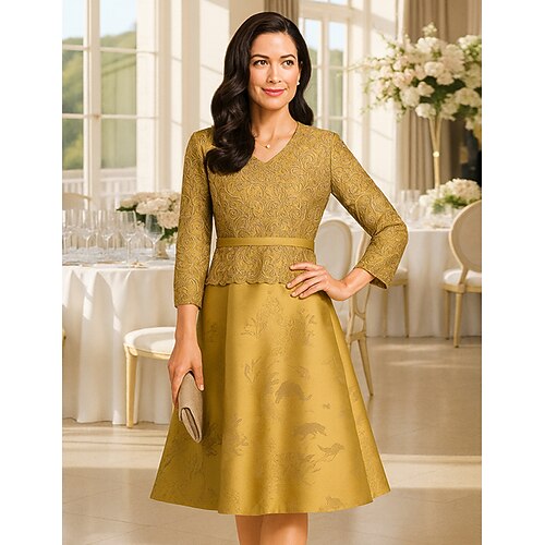 Abito da prom a lunghezza ginocchio A-Line Abito da festa Abito da sera Abito per la madre della sposa Manica a 3/4 Collo a V Elegante Vintage Festa con Perline