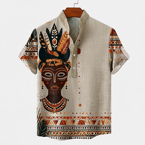 Per uomo Etico / africano Popoli indigeni Camicia Camicia button-down Manica Corta Vintage Retrò Ferie Casual Quotidiano Estate Primavera Colletto Mao Colletto Henley Stampa 3D Camicia tipo lino