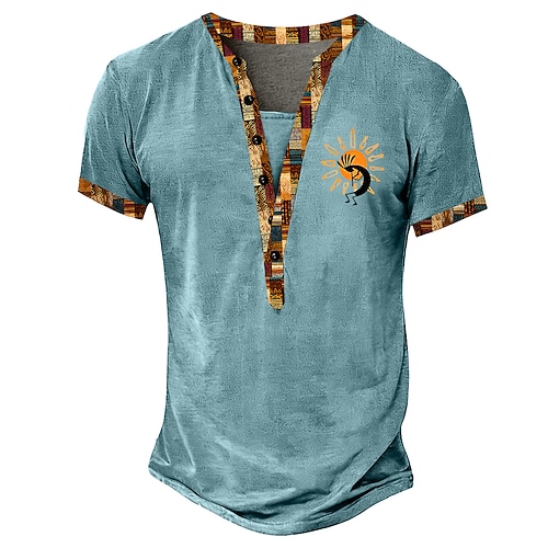 Per uomo Carnevale Grafico Tribale Stampa bandana Maglietta Maglia Henley Manica Corta Designer Etnico Casual Casuale Quotidiano Estate Primavera Blu Giallo Rosa Marrone Colletto Mao Henley Maglietta
