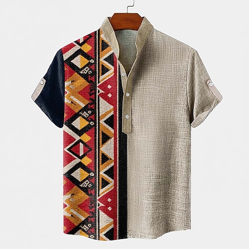 Per uomo Motivo Geometrico Tribale Etnico Camicia Camicia button-down Manica Corta Vintage Retrò Ferie Casual Quotidiano Estate Primavera Colletto Mao Colletto Henley Stampa 3D Camicia tipo lino