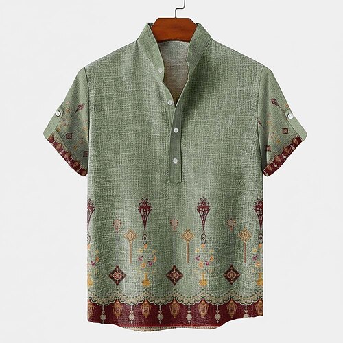 Per uomo Geometrico Etnico Camicia Camicia button-down Manica Corta Vintage Retrò Ferie Casual Quotidiano Estate Primavera Colletto Mao Colletto Henley Stampa 3D Camicia tipo lino Cáqui Escuro Verde