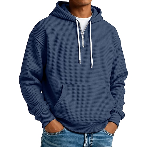 Per uomo Felpa con cappuccio Felpa con cappuccio a nido d'ape Maglione Aalbicocca Rosso bordeaux Nero Bianco Blu marino Con Cappuccio Semplice Tasca a marsupio Testurizzato Casuale Quotidiano Sport