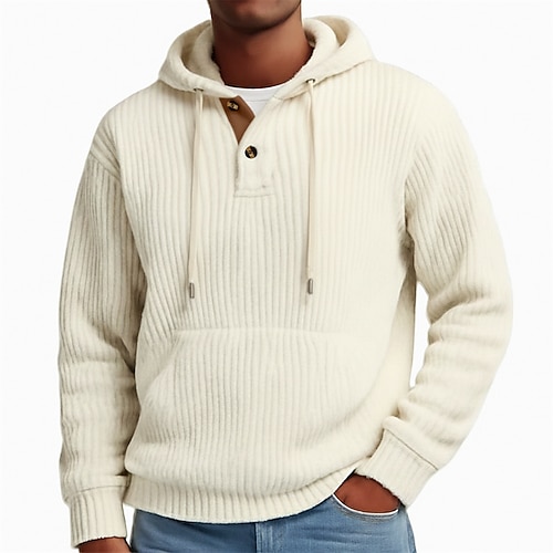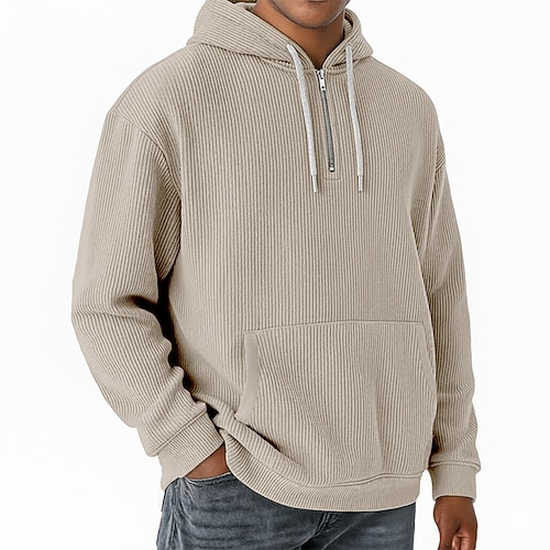 Per uomo Felpa con cappuccio Felpa con cappuccio abbottonata Maglia a coste Nero Bianco Verde militare Beige Con Cappuccio Semplice Tasca a marsupio Testurizzato Casuale Quotidiano Sport Outdoor