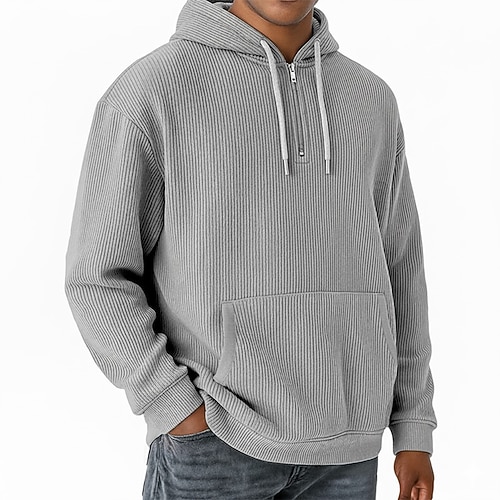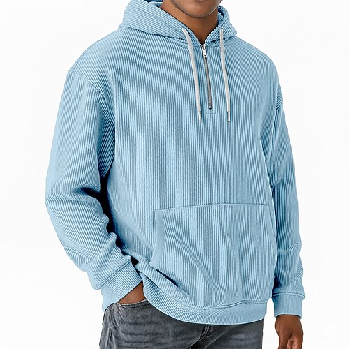 Per uomo Felpa con cappuccio Velluto a coste Aalbicocca Rosso bordeaux Nero Bianco Blu marino Con Cappuccio Semplice Tasca a marsupio Testurizzato Sport Outdoor Casuale Quotidiano Streetwear Cool