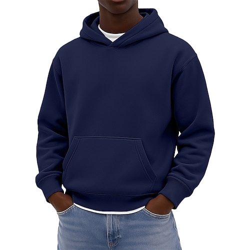 Per uomo Felpa con cappuccio Blu Nero Verde Cachi Grigio chiaro Con Cappuccio Semplice Tasca a marsupio Sport Outdoor Casuale Quotidiano Streetwear Cool Abbigliamento Sportivo Primavera Autunno