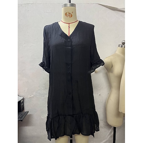 Per donna Mini Abito Abito Bianco Abito da Spiaggia Abito nero Copricostume Elegante Moda Classico Quotidiano All'aperto Spiaggia Vestibilità comoda Semplice Mezza Manica Scollo a V Nero Bianco Cachi