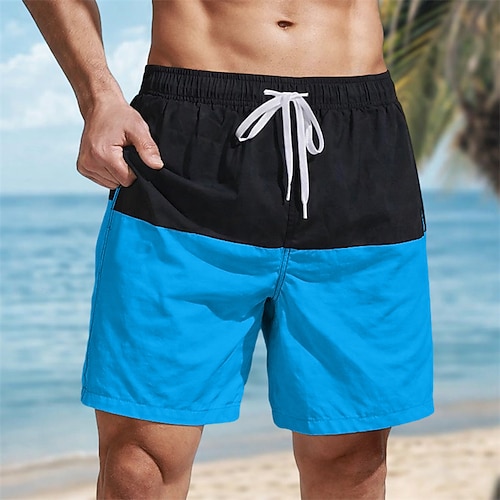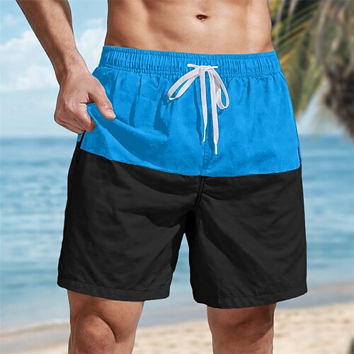Per uomo Costumi da bagno Boxer da mare Slip da bagno Vita elastica Color Block Traspirante Morbido Esterno Informale Giornaliero Hawaiano Moda Nero Bianco Media elasticità