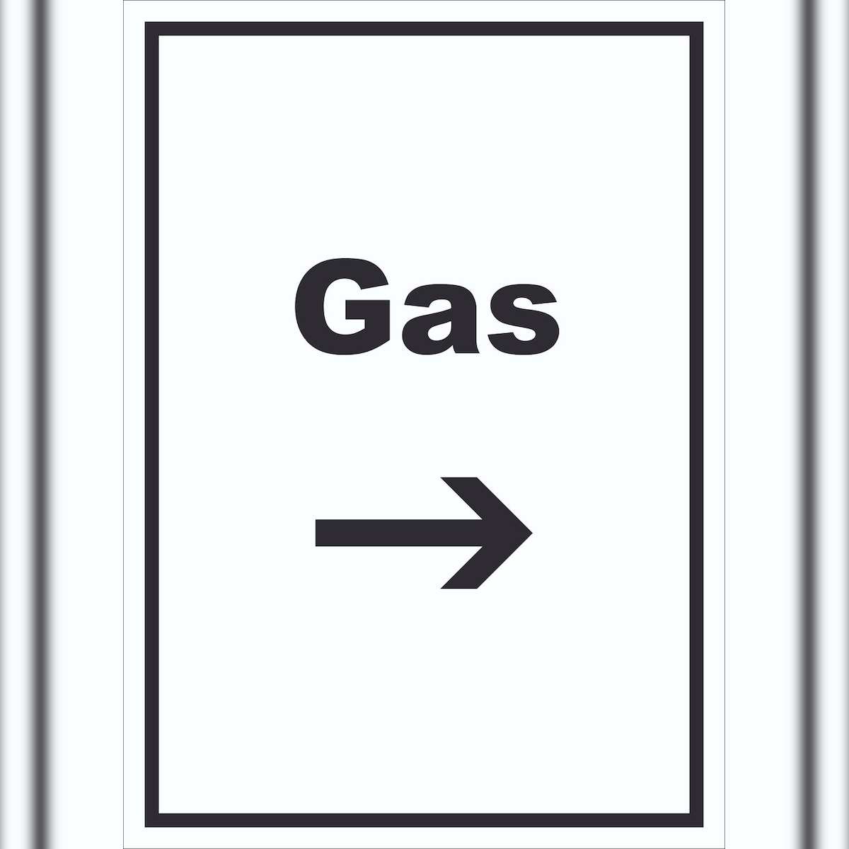HB-Druck Gas Schild mit Text und Richtungspfeil rechts Anschluss hochkant A5 (148x210mm)