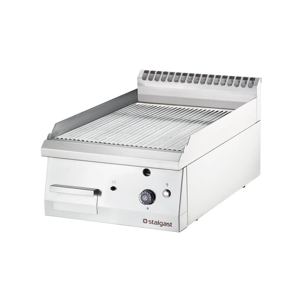 Stalgast verchromte Gas-Griddleplatte als Tischgerät, 400x700 mm, gerillte Grillfläche, Serie 700 ND