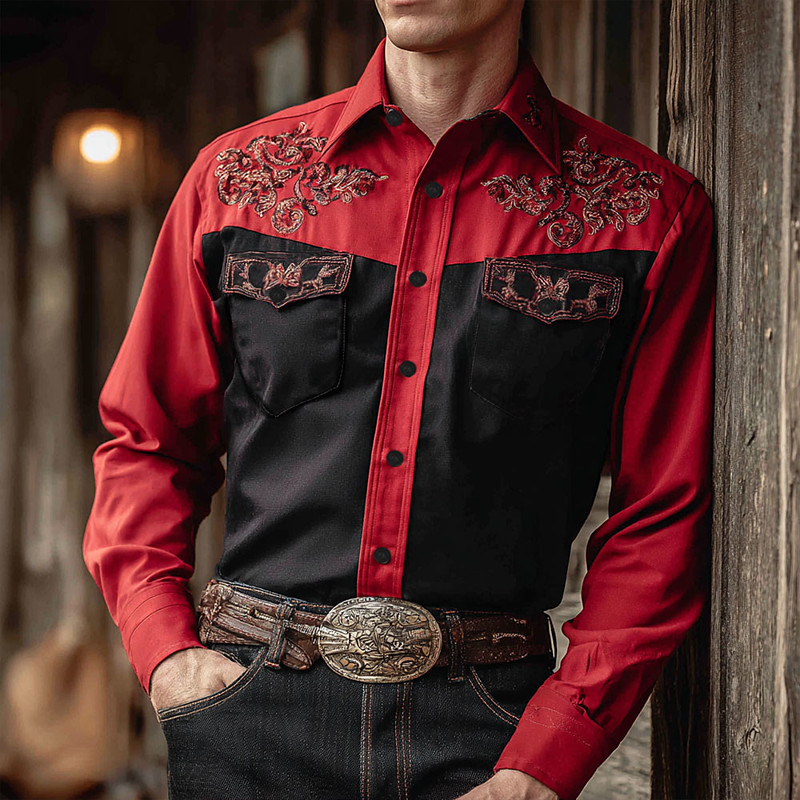 Men's Paisley Floral Print Ethnic Shirt Western Shirt Cowboy Shirt Long Sleeve Vintage Retro Outdoor Casual WorkWear Spring Fall Turndown Front Two Pockets Linen Like Shirt Button Up Shirts
