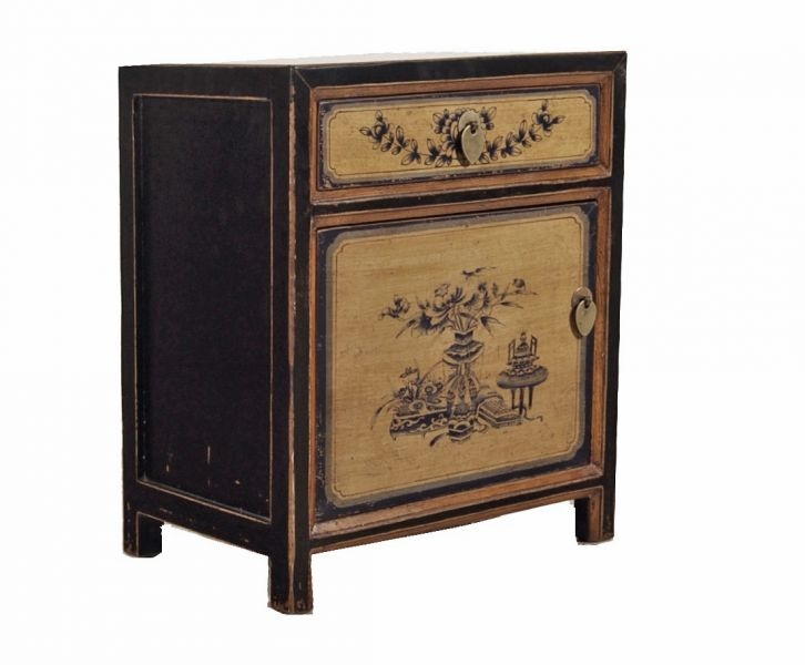 OPIUM OUTLET Möbel Kommode Nachttisch Nachtschrank Nachtkonsole Nachtkästchen 35191-1 schwarz-beige asiatisch chinesisch orientalisch