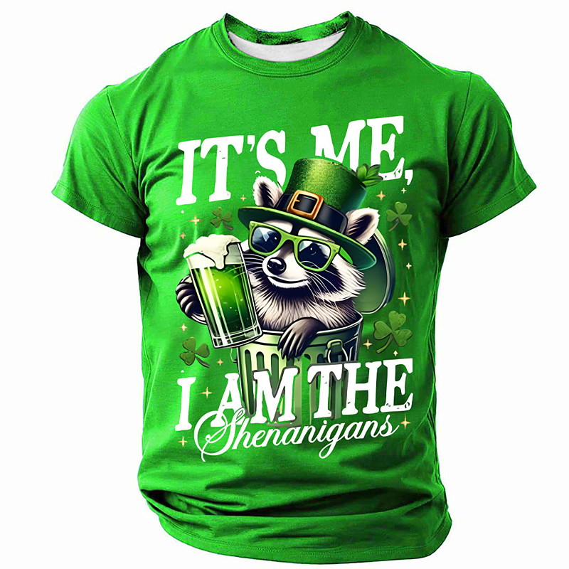 St Patricks Day Mens T Shirt Its Me I Am The Shenanigans Funny Raccoon Leprechaun Hat Green Beer Shamrock Graphic Short Sleeve Tee Humorous Trash Panda Holiday Top Clothing Apparel S M L XL XXL X