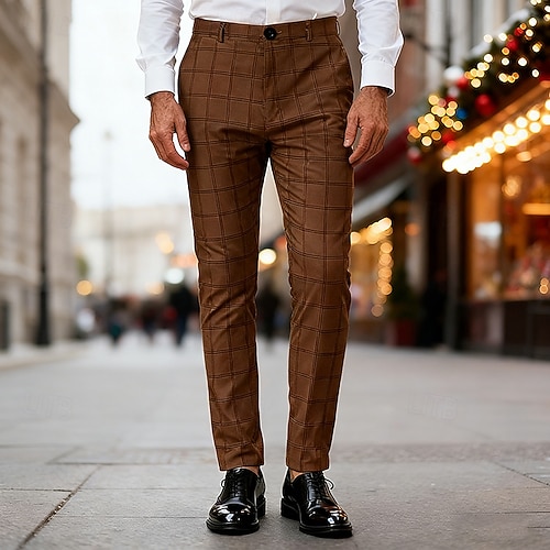 Per uomo Pantaloni Pantaloni Eleganti Chinos Tasca Bottoni Plaid Comodità Quotidiano Affari Lavoro Moda Stile Classico Nero Vino Micro-elastico