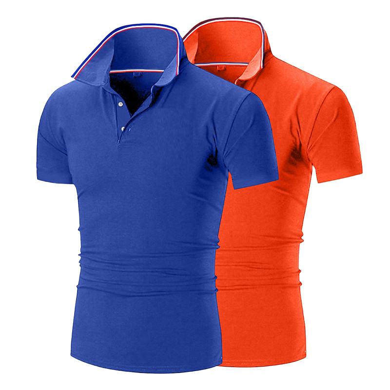 2 Piece Men's Golf Shirt Pique Polo Shirt Business Casual Ribbed Polo Collar Short Sleeve Fashion Basic Solid Color 2 Pcs Buttons Summer Spring Fall All Seasons Golf Shirt