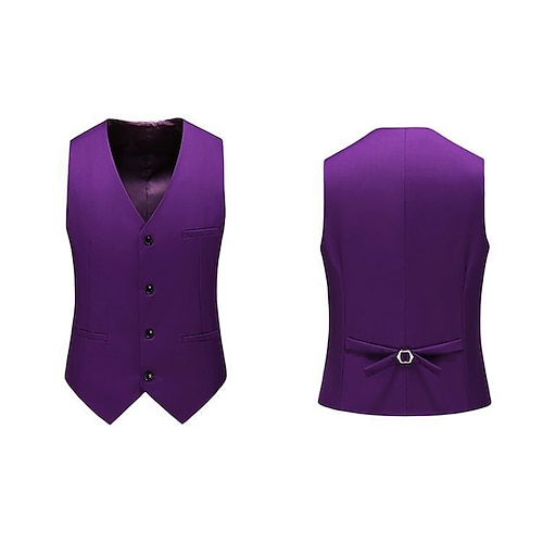 Herrenmode Weste Heimkehr Einfarbig Standard Passform V-Ausschnitt Einreiher mit vier Knöpfen Schwarz Burgunder Blau