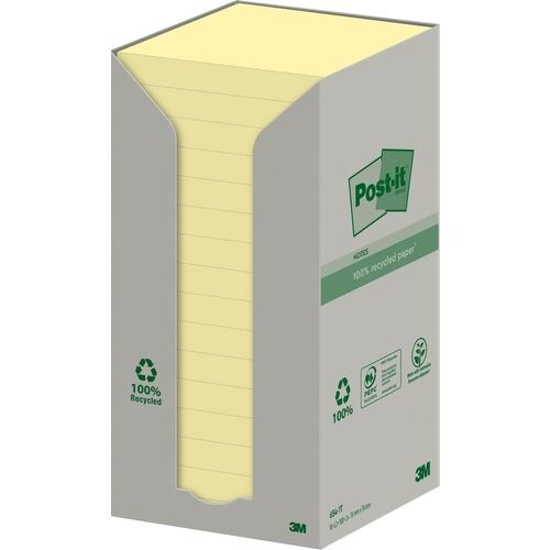 Post-it Recycelte Haftnotizen 76 x 76 mm Kanariengelb 16 Blöcke à 100 Blatt