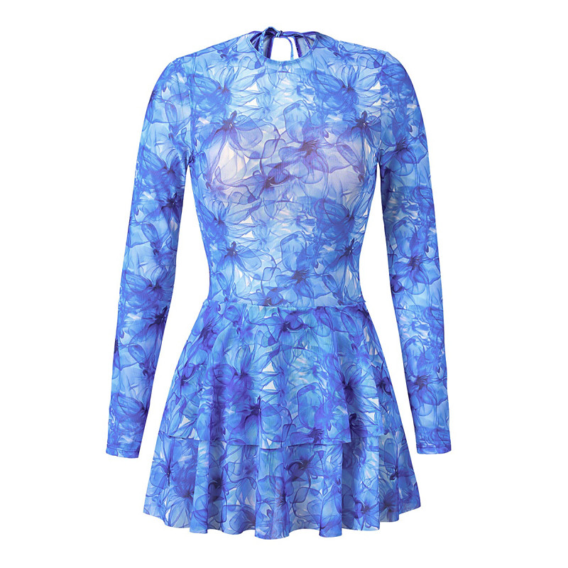 Women's One Piece Swimsuit with Skirt Boho Dress Tummy Control High Waist Slim Backless Vacation Beach Wear Graphic Geometic Round Neck Sleeveless Long Sleeve Bathing Suits