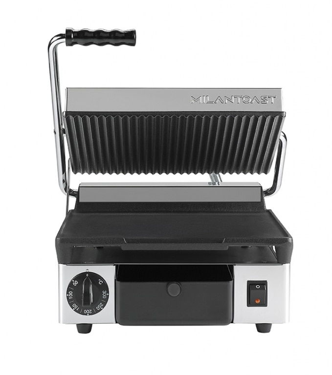 MilanToast – Quadratische Grillplatte aus Gusseisen mit glatten Rippen, 220–240 V, 2,9 kW