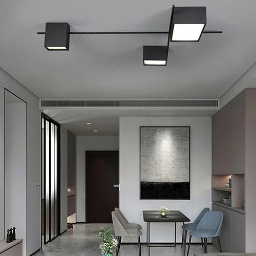 LED-Deckenleuchten, 3-Licht, warme Lichtfarbe, 3 Farben, quadratisches Liniendesign, Deckenleuchten aus Metall, moderne Deckenleuchten für Esszimmer und Schlafzimmer, 110–240 V