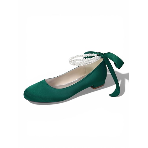 Elfenbeinfarbene, perlenbesetzte Ballerinas mit Knöchelriemen für Damen, elegante Brautschuhe im Ballerina-Stil für eine Hochzeit im Freien auf dem Rasen